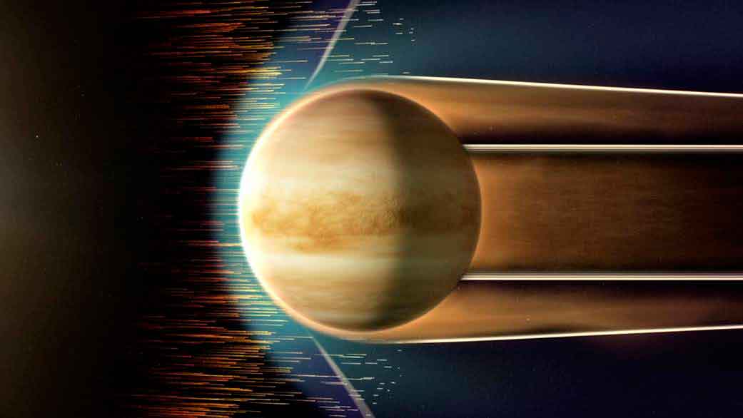 • As nuvens de Vênus são feitas principalmente de ácido sulfúrico venenoso devido a meteoritos que cruzaram sua atmosfera. Uma partÃcula de detritos é constituÃda ou meteoroide quando passa perto de um planeta pode deixar resÃduos de elementos mais pesados tais como: SilÃcio, Magnésio e o Ferro.